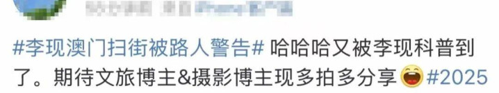 李现澳门街头照相 被路东说念主劝诫